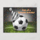 I want to have a soccerball with a birthday hat on top of it. For the text on the front I added a stroke and drop shadow so that it would be easier to read. I tried to get as much of the soccer ball and hat on the front as I could. The text and image are generativecontent. All the text can be edited.