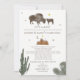 A baby shower by mail invitation featuring an illustration of a baby and mama buffalo at top with illustrations of desert mountains, moon, stars, and cactus. Personalize the text.