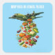 Where activism meets art. This vibrant illustration reimagines a military aircraft as a vessel for global nourishment. A striking, colorful design for those who believe in a world that prioritizes food over conflict