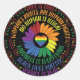 Colourful word art design sticker covers all the bases with its shoutout to human rights. Quotes include: Black Lives Matter, Science is Real, Love is Love, Women's Rights are Human Rights, No Human is Illegal, and Kindness is Everything. Black background with centre rainbow heart and sunflower