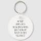 Round button keychain features text "My baby looks like a social media model and I'm on my 3rd day in these yoga pants!" Keychains make fun gifts for family and friends or create for yourself.
