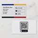 Les cartes de contact d'affaires des médias sociaux dans un design moderne couleurs primaires avec les coordonnées pour Facebook et Twitter et le code QR scannable dans un design coloré cool. Créé comme carte de visite pour le marketing des médias sociaux ou le réseautage.