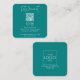 Designed in a square format with a trendy and minimalist script, these business cards feature a stylish aqua teal colour scheme. The inclusion of a QR code allows for easy access to your social media profiles, providing a convenient way for clients and contacts to connect with you on platforms like Instagram and Facebook.