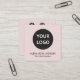 Make a statement with your chic feminine blush pink square business card displaying your custom logo front and centre above your name and title or business name. The back of the card displays your website QR code and social media icons for Instagram and Facebook just above your @username and website URL. You can easily replace the personal information text and the "your logo" graphic with your own on the personalization template.