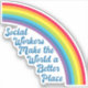 Social workers make the world a better place. Motivational social work gift with a beautiful inspirational quote under a cute rainbow in a blue sky. Pretty social services contour sticker for a laptop or water bottle.