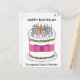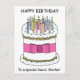 A giant cartoon birthday cake covered in lit candles and with a large pink bow around it. The words 'Happy Birthday to a special social worker' accompany the image.