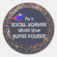 I'm a Social Worker. What's Your Super Power? white lettering on dark navy blue background sparkling.