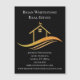 Cet aimant de carte de société immobilière chic est fait sur mesure avec le nom de votre société immobilière sous la typographie blanche. Ces cartes magnétiques sont parfaites pour distribuer lors d'un événement promotionnel. Elles disposent d'une jolie maison avec une girouette sur le dessus et de courbes élégantes en dessous en or sur un arrière - plan noir.