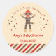 Trendy yet elegant sticker ideal for a chic mom-to-be. Features a cute sock monkey character with a knitted hat. This unisex design in a sophisticated colour palette will put a smile on your guests face. Use it for party favours or to seal envelopes. Add your own wording.