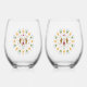 Sock Monkey Lovers in a Folk Garden Stemless Wine Glass
