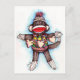 Sock Monkey Holding 3 hearts on a string. Up to some Sock Monkey Business