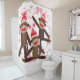 If you love cute little brown sock monkeys you'll love this shower curtain featuring a white with pink hearts background and three cute sock monkeys wearing pink and red hats.