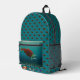 On the pocket: A male sockeye salmon, underwater, hovers over a rocky stream bed with the red coloration, humped back and hooked snout characteristic of spawning. Customize by adding your own text. The sockeye image is tiled on the rest of the pack.