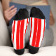 This pair of red and white stripes design socks are a soft fabric covering for the feet, typically worn inside shoes to provide comfort, warmth, and absorbency. You can customise this pair of socks with any text of your choice. Should you require any help with customising then contact us through the message link on this page. Red and white stripes design pair of socks.