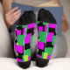 Keep your tootsies toasty in these super cool socks! These socks with artwork by Buttercup's Clothing and Collectables feature a fun abstract pattern of squares and rectangles in shades of black , green , and magenta , with contrasting heel and toe. Available in Women's and Men's sizes.