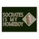 The text says "Socrates is my Homeboy" in greens and browns. This is, of course, adorned by the image of a statue of Socrates' head.