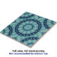 This ceramic tile features a mesmerizing kaleidoscopic design. At the heart of the tile, a delicate floral motif unfolds, surrounded by an array of geometric shapes that radiate outward in symmetrical patterns. The design is characterized by its intricate detail, creating a sense of depth and movement. The tile’s colour palette is a harmonious blend of various shades of soft blue and navy blue, interspersed with subtle touches of cream. These cool and calming hues, combined with the cream-coloured details, add contrast and visual interest to the design.