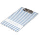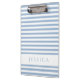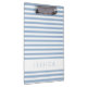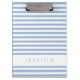 Soft blue and white striped pattern clipboard featuring a personalized name print on front and back. For matching blue and white striped stationery and more colour options check out the full striped stationery collection below and visit Dots & Stripes Pattern Design Studio by Maggie B for more personalized stationery.