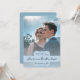 Announce your upcoming wedding day with a simple and elegant photo save the date announcement. Announcement design features photo placement of the engaged couple with a soft blue gradient and banner and handwritten text for the bride and groom's names. If you need assistance with personalization, please contact me directly to ensure you receive the announcement to your specifications.