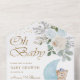 Soft Blue Floral Moon Cute Teddy Bear Baby Shower All In One Invitation