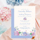 These bright Hydrangea Flower Wedding Invitations are decorated with soft blue colored lettering, and delicate pastel floral clusters. The front text includes the full wedding invitation details, with the Bride and Groom's Names, Wedding Date, Location, and Reception details. The reverse is a matching soft blue background. To personalize, simply insert your details into our easy template, replacing the sample text.