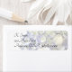 Soft blue hydrangeas and white roses in subtle background. Name and address text can be customized
