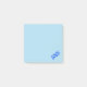 Baby blue Post-it notes with the word LOVE printed in the corner. LOVE has been created using an Evil Eye as the letter O. Symbolic eye.
