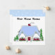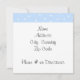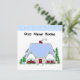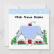 A great 'new home' or housewarming party invitation. Customize with all of your information as desired. A cute blue roofed house with a red door and red accents.  Soft snow covers the roof line and trees.