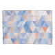 Triangles intertwine in soft blues and oranges. An artful masterpiece of geometric harmony.