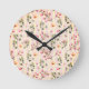 Soft Blue Stripe Floral Round Clock
