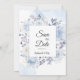 This design features a delicate arrangement of soft blue, white, and lavender roses and botanical elements, framing a clean center area for your event details. The background has a dusty blue watercolor wash, lending a romantic, ethereal, and elegant feel.