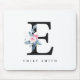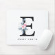 SOFT BLUSH BLUE FLORAL ALPHABETS NAME LETTER E MOUSE PAD
