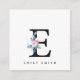 SOFT BLUSH BLUE FLORAL ALPHABETS NAME LETTER E SQUARE BUSINESS CARD