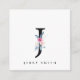 SOFT BLUSH BLUE FLORAL ALPHABETS NAME LETTER J SQUARE BUSINESS CARD