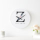 SOFT BLUSH BLUE FLORAL ALPHABETS NAME LETTER Z LARGE CLOCK