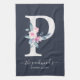 SOFT BLUSH BLUE NAVY FLORAL ALPHABETS LETTER P KITCHEN TOWEL