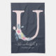 SOFT BLUSH BLUE NAVY FLORAL ALPHABETS LETTER U KITCHEN TOWEL