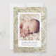 Cette belle faire-part de naissance est ornée d'un joli arrière - plan botanique encadrant une grande photo. Les feuilles et les branches illustrés à la main sont dessinés dans le brun de cèdre doux contre un arrière - plan d'aquarelle couleur lin chaud. Un cadre de cliché blanc entoure votre photo, le nom de votre nouveau-né, les statistiques de naissance et vos noms. Le verso du faire-part de naissance est vierge afin d'accueillir d'autres photos et/ou un message personnel aux destinataires.