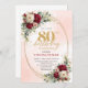 Soft Burgundy Floral Gold 80th Birthday Invitation