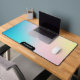 Soft colours, modern gradient iridescent background with turquoise blue, pink, and yellow colours blend—customizable discrete monogram on black.