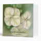 This binder is embellished on both sides with artwork in soft pastel colours picturing three creamy white oakleaf hydrangea blossoms with buds accented in green. Text templates on spine and front may be customized for your wedding or any event.