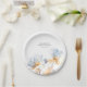 Soft Dusty Blue and Gold Flowers Elegant Paper Plate