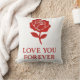This pillow shows a sweet rose with a soft forever message.