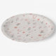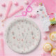 Soft paper plates featuring a delicate floral pattern in muted, neutral tones.