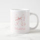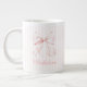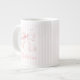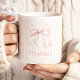 Cute & charming pink coffee mug featuring a soft blush pink stripe background design and a delicate bow illustration.