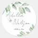 Soft Green Leaves Wedding Round Sticker designed with delicate flowing green leaves and elegant script text. This template Wedding Sticker is easy to personalize. The text includes: the Bride and Groom's First Names and Wedding Date. To personalize simply insert your details into our easy template, replacing the sample.