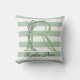Soft green strips monogram lavender greenery outdoor pillow
