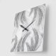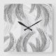 Soft Grey Black White Feather Palm Bliss 1 Square Wall Clock