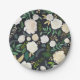 Soft Ivory Floral Pattern with Greenery Black Paper Plate