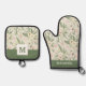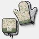 Soft Mint Green Garden Flower Pattern Oven Mitt & Pot Holder Set